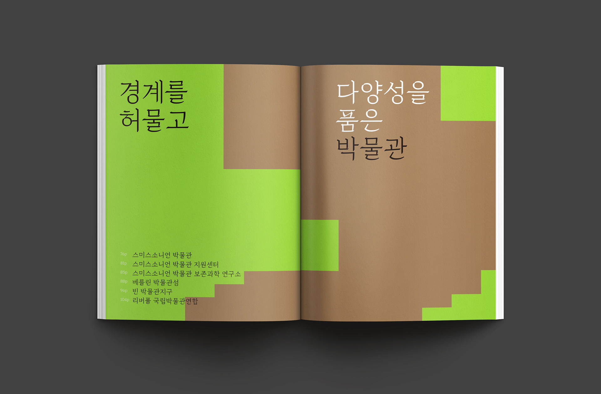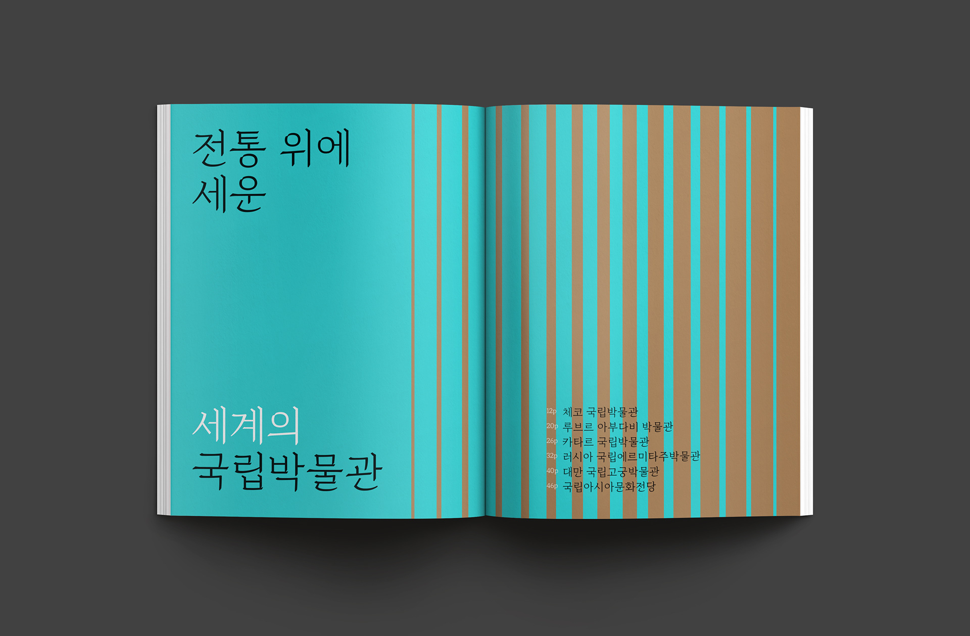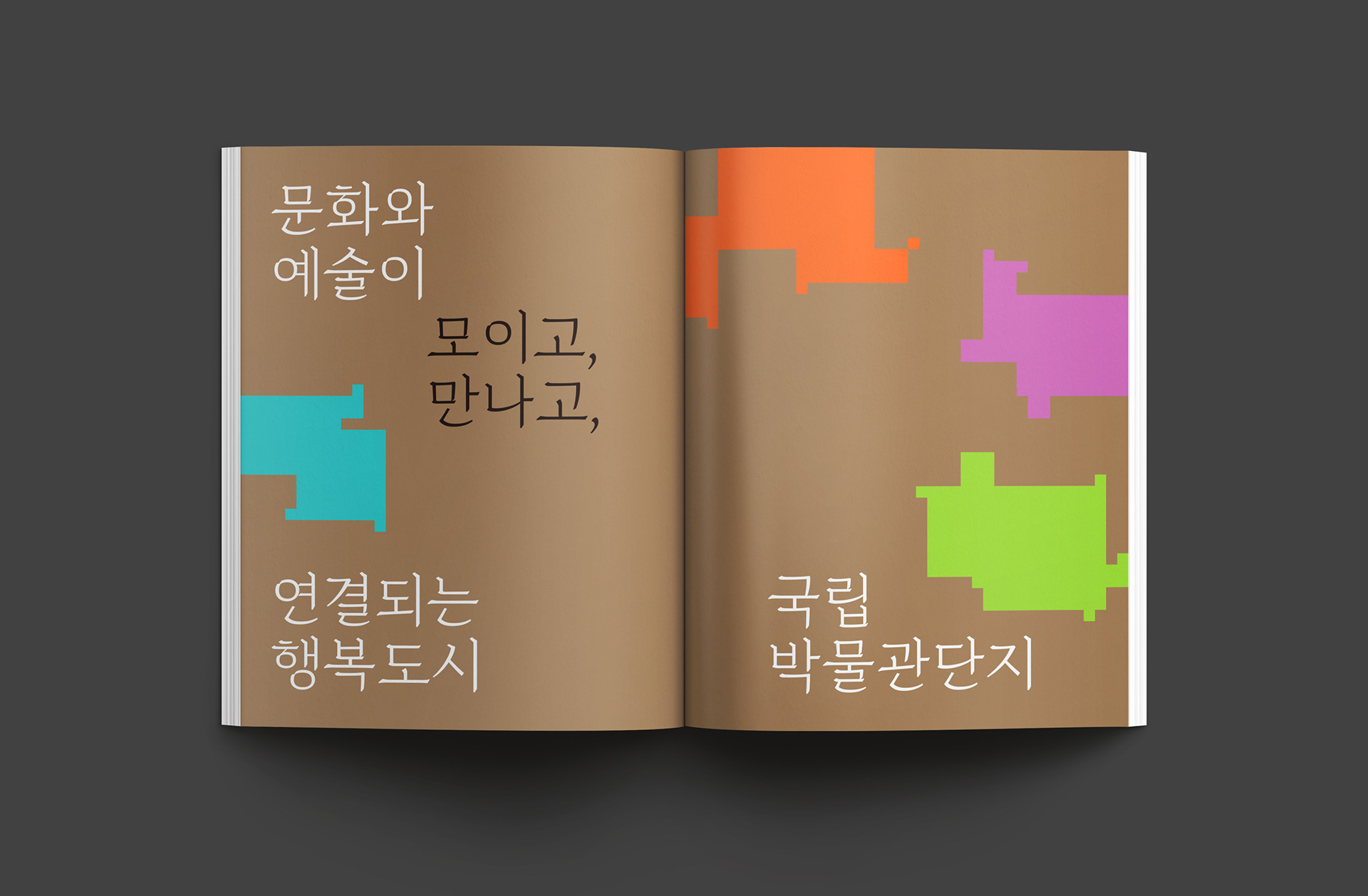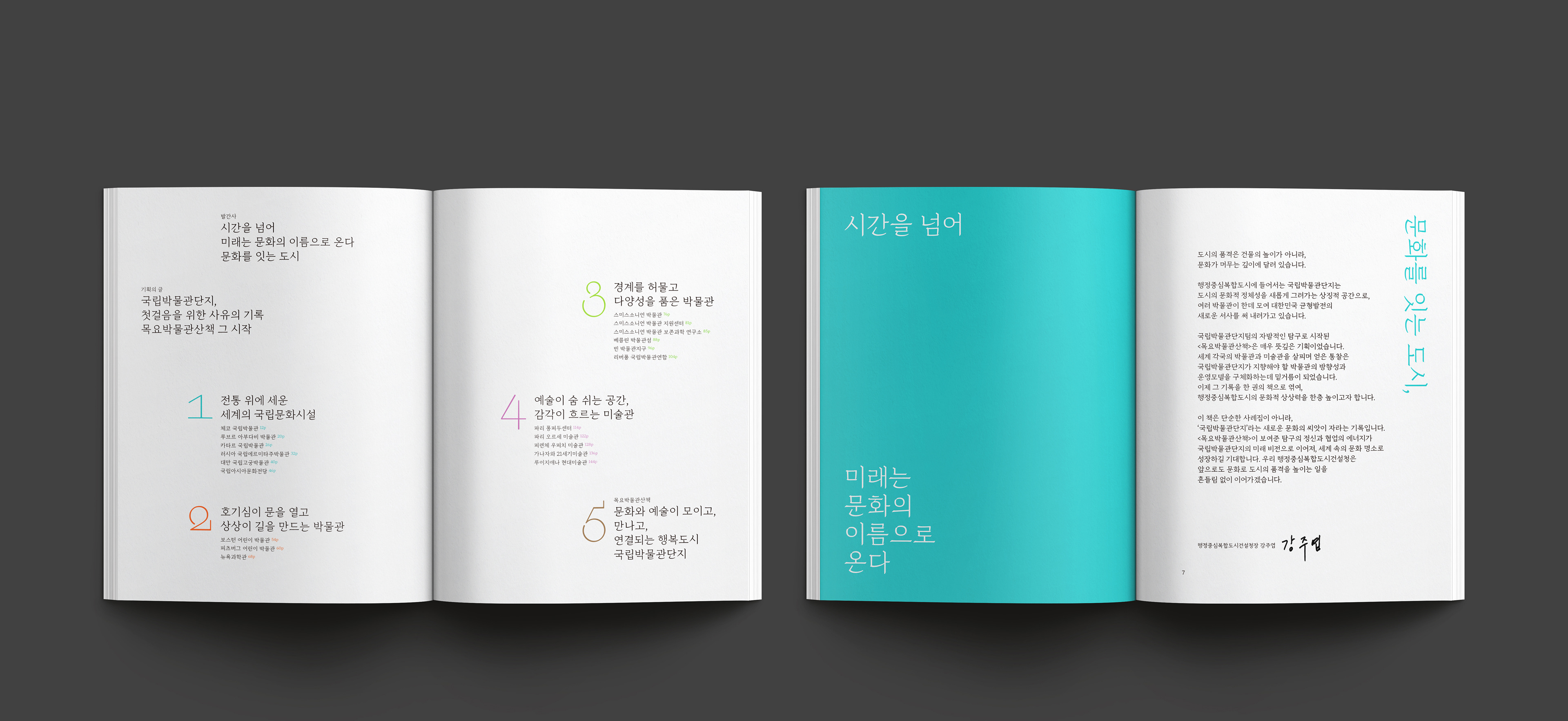 행복도시 국립박물관단지는 다양한 주제의 박물관과 통합지원시설이 모인, 문화·예술 향유의 공간입니다. 도시의 중심에서 새로운 문화적 상징을 만들고 행정중심복합도시의 자족성을 높이는 중요한 공간의 역할을 수행합니다. 디자인퍼플은 세계 각국의 박물관과 미술관 소개를 담은 국립박물관단지 목요박물관산책 책자를 디자인하였습니다.